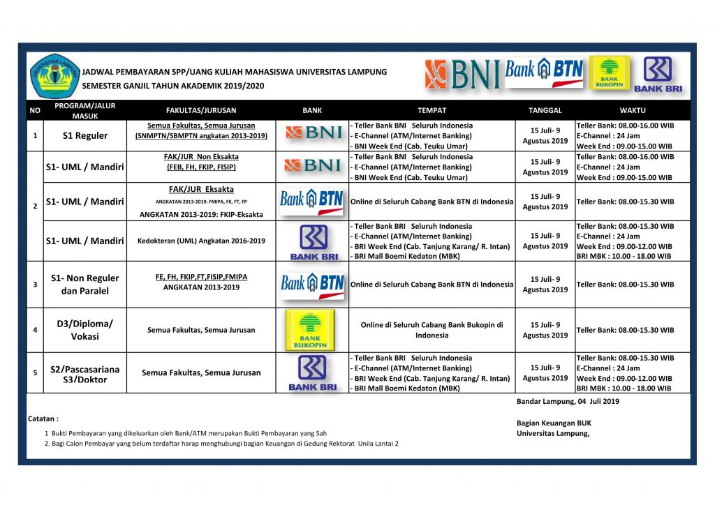Jadwal Pembayaran SPP TA 2019/2020