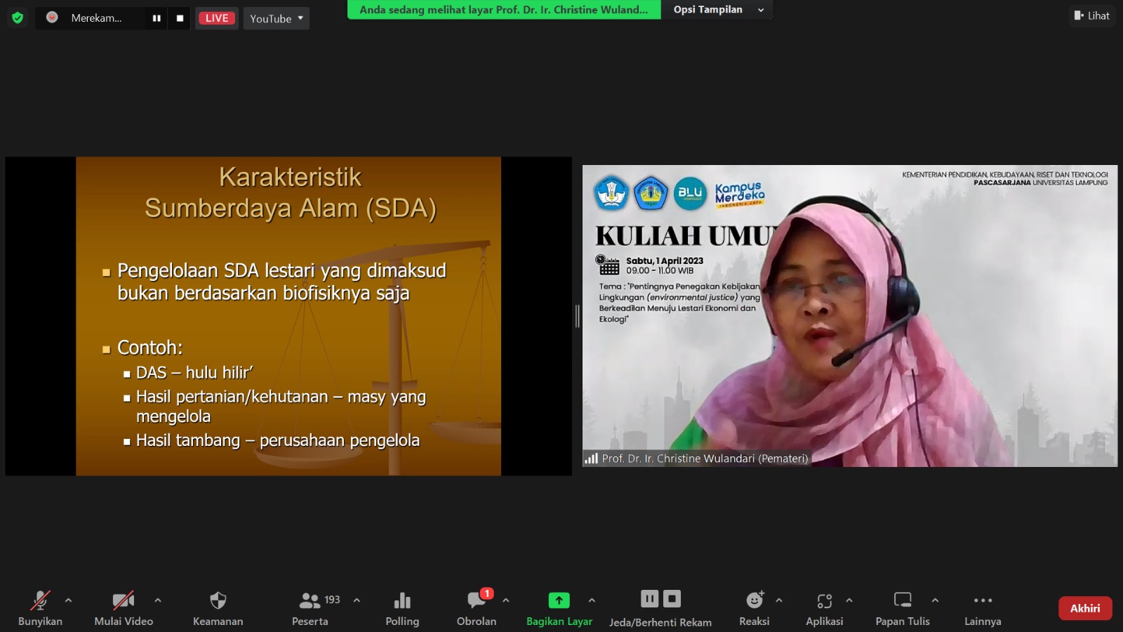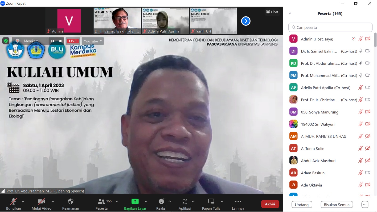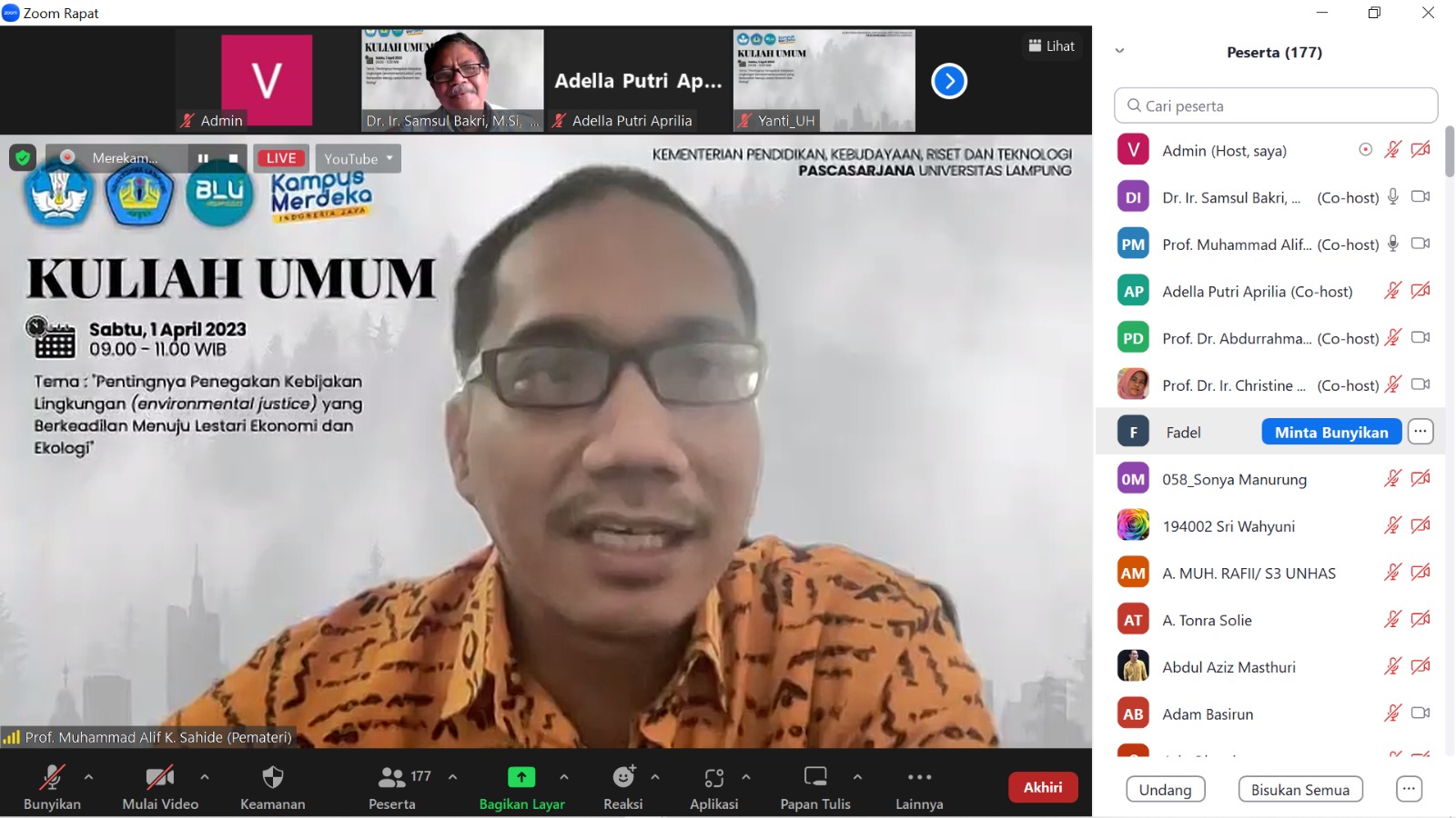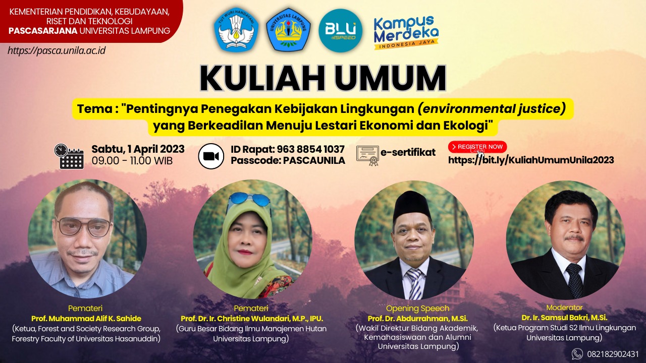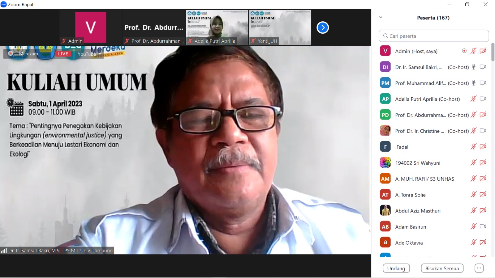 Tema : “Pentingnya Penegakan Kebijakan Lingkungan (environmental justice) yang Berkeadilan Menuju Lestari Ekonomi dan Ekologi”