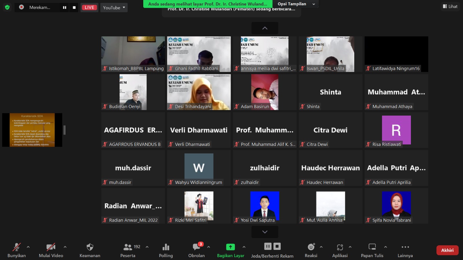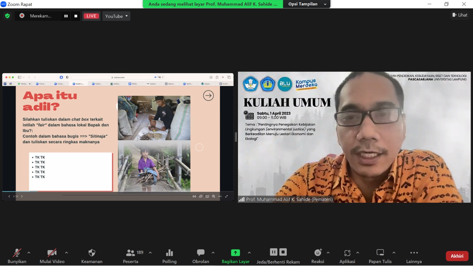 Foto Kegiatan Kuliah Umum oleh Prof. Muhammad Alif K. Sahide & Prof. Dr. Ir. Christine Wulandari, M.P. IPU.