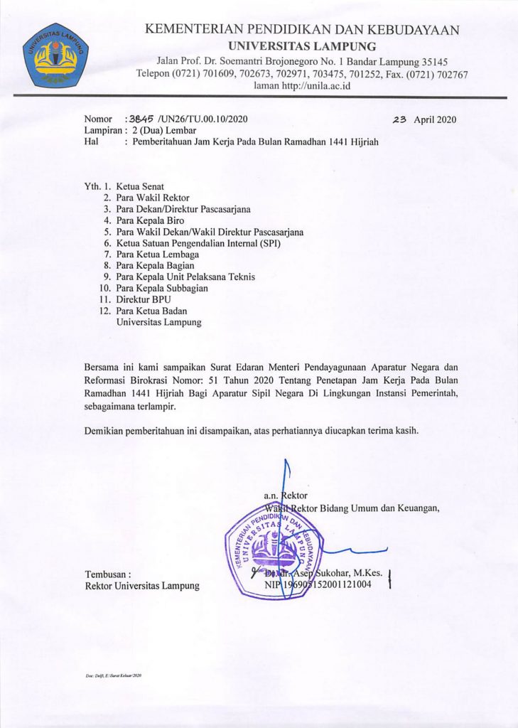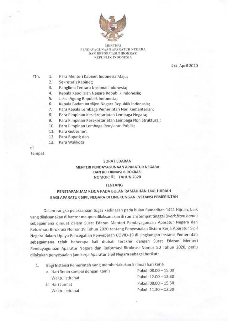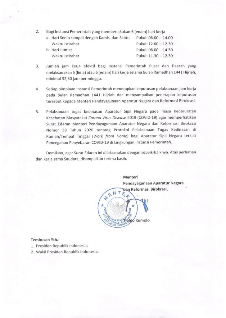 Pemberitahuan Jam Kerja Pada Bulan Ramadhan 1441 Hijriah