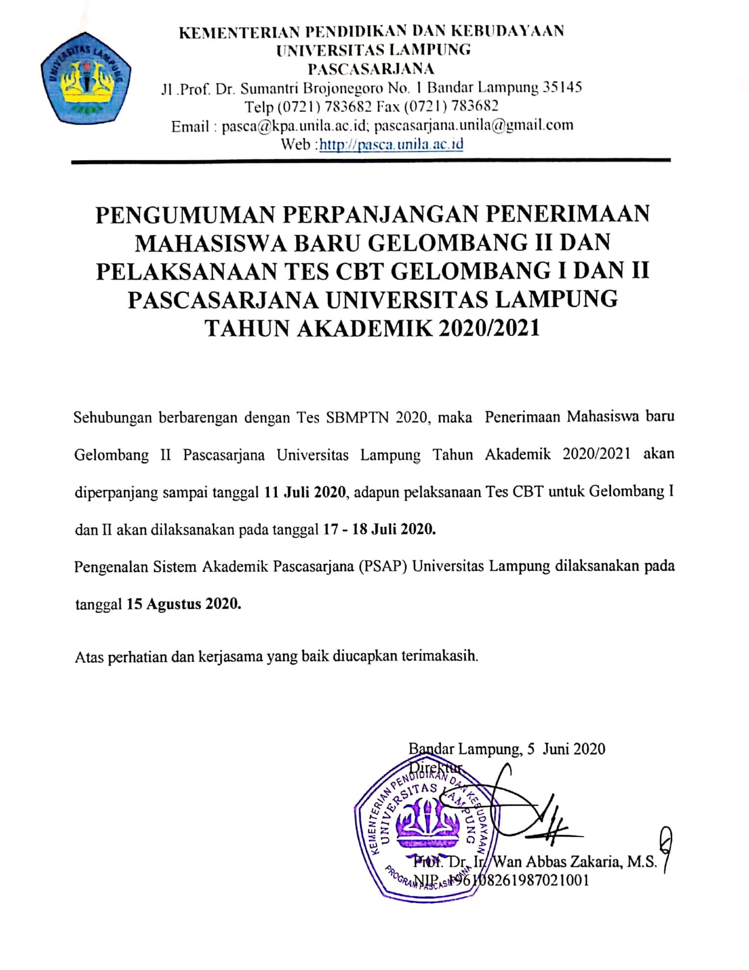SK Pengumuman Mahasiswa Baru