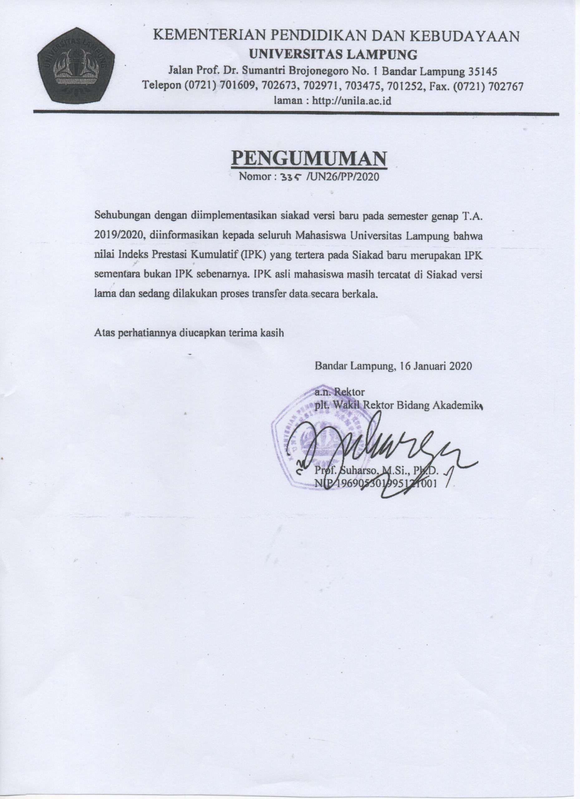 Pengumuman Siakad Baru 2020