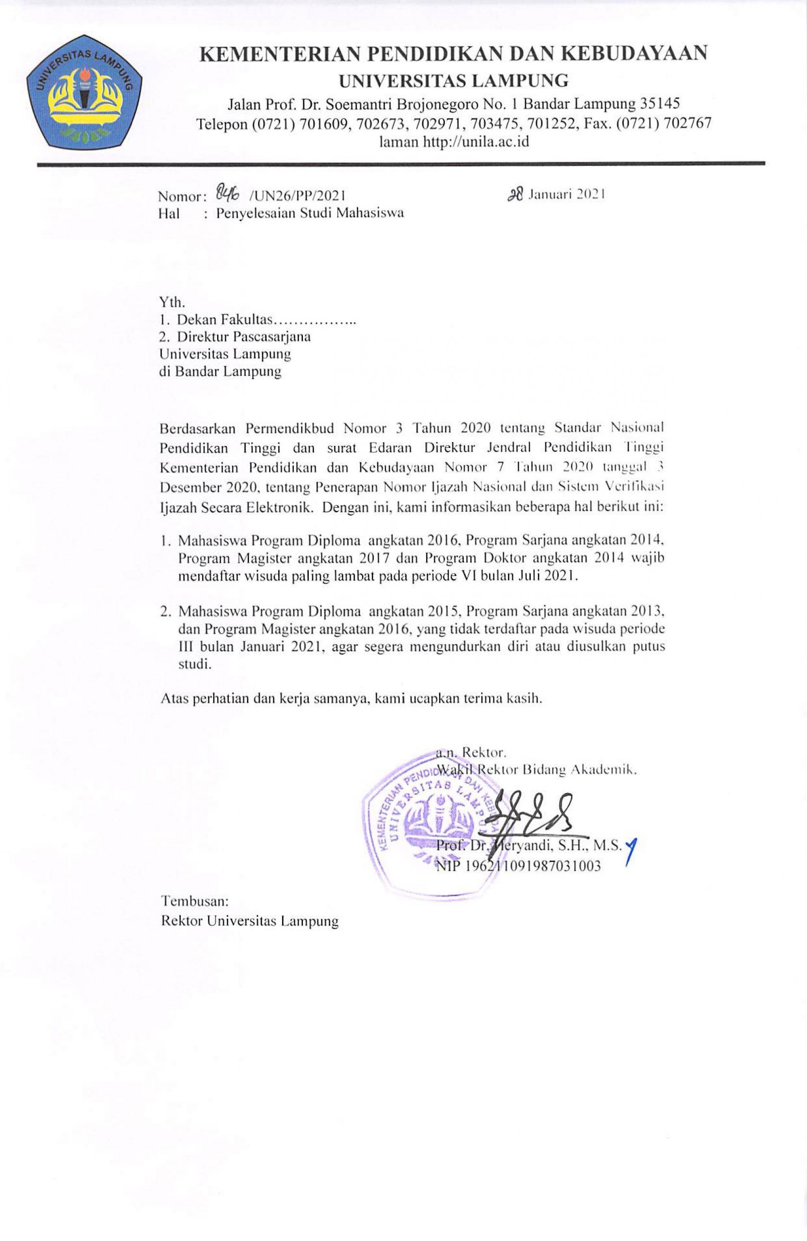 SK Pendirian Universitas Lampung